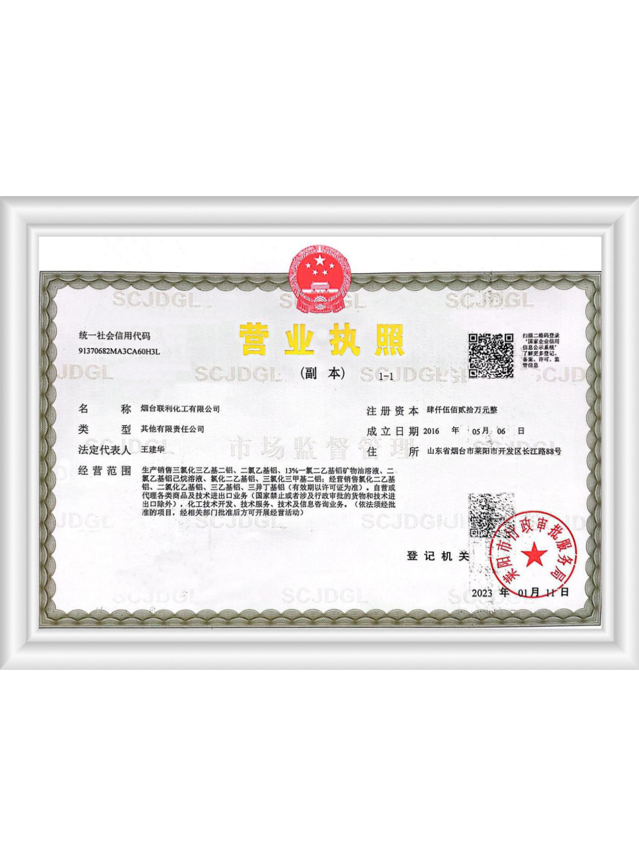 煙臺(tái)聯(lián)利化工有限公司成立于2016年5月,位于煙臺(tái)市萊陽(yáng)經(jīng)濟(jì)開發(fā)區(qū)長(zhǎng)江路88號(hào),公司前身為1988年北京燕山石化公司技術(shù)轉(zhuǎn)讓成立的煙臺(tái)燕德化工有限公司。